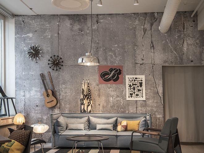 10 лет назад был популярен стиль лофт, в котором бетонные грубые стены были основным «фоном» интерьера. Выше уже говорили, что лучше использовать бетон в качестве акцента. Он может быть классическим серым, антрацитовым, либо теплым, мягким для интерьеров в стиле эко или бохо.