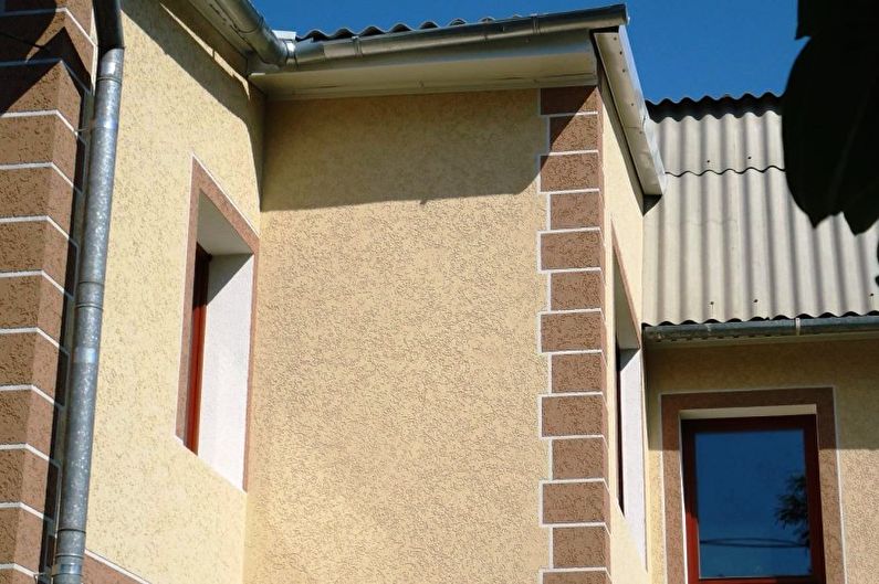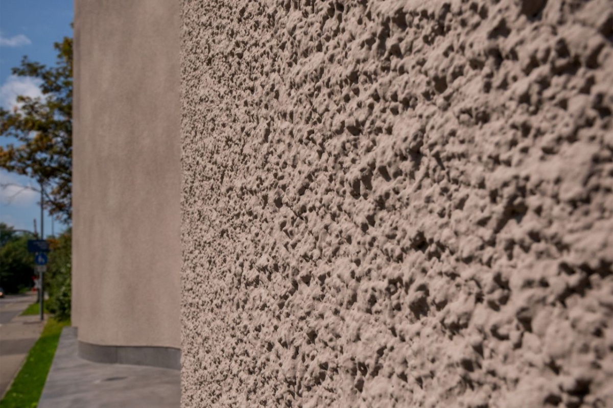 Для рельефа на фасаде подойдет штукатурка GD-31 «короед». Она обладает необходимой атмосферостойкостью.
