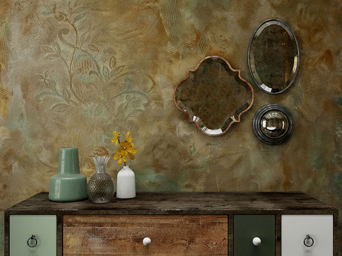 Трафареты давно завоевали почетное место на акцентных стенах самых разных стилей — от смелого лофта до нестареющей классики. Штукатурка, подходящая для нанесения трафарета — GD-41 «Травертин».