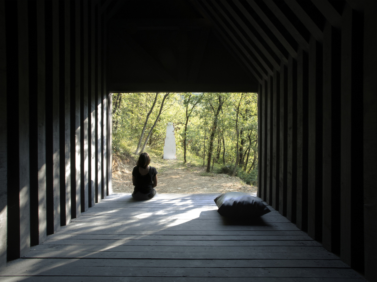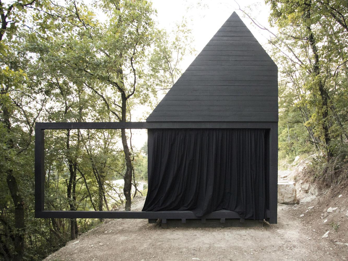 В проекте «Часовня Молчания» занавес используют, чтобы отгородить посетителей от внешнего мира на время молитвы. В остальное время пространство остается открытым, чтобы объединить внутреннее пространство и природу:
