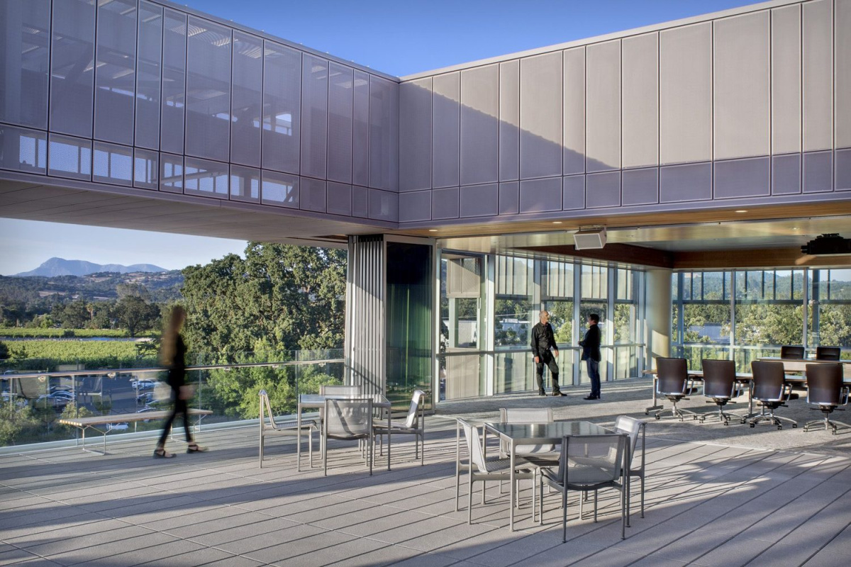 Компания Dri-Design производит стеновые панели различных цветов, материалов, размеров, текстуры, формы и стиля перфорации. Например, фасад калифорнийского здания American AG Credit облицован перфорированными цинковыми панелями Dri-Design. Цинк выбрали как самый долговечный и не требующий ухода материал.