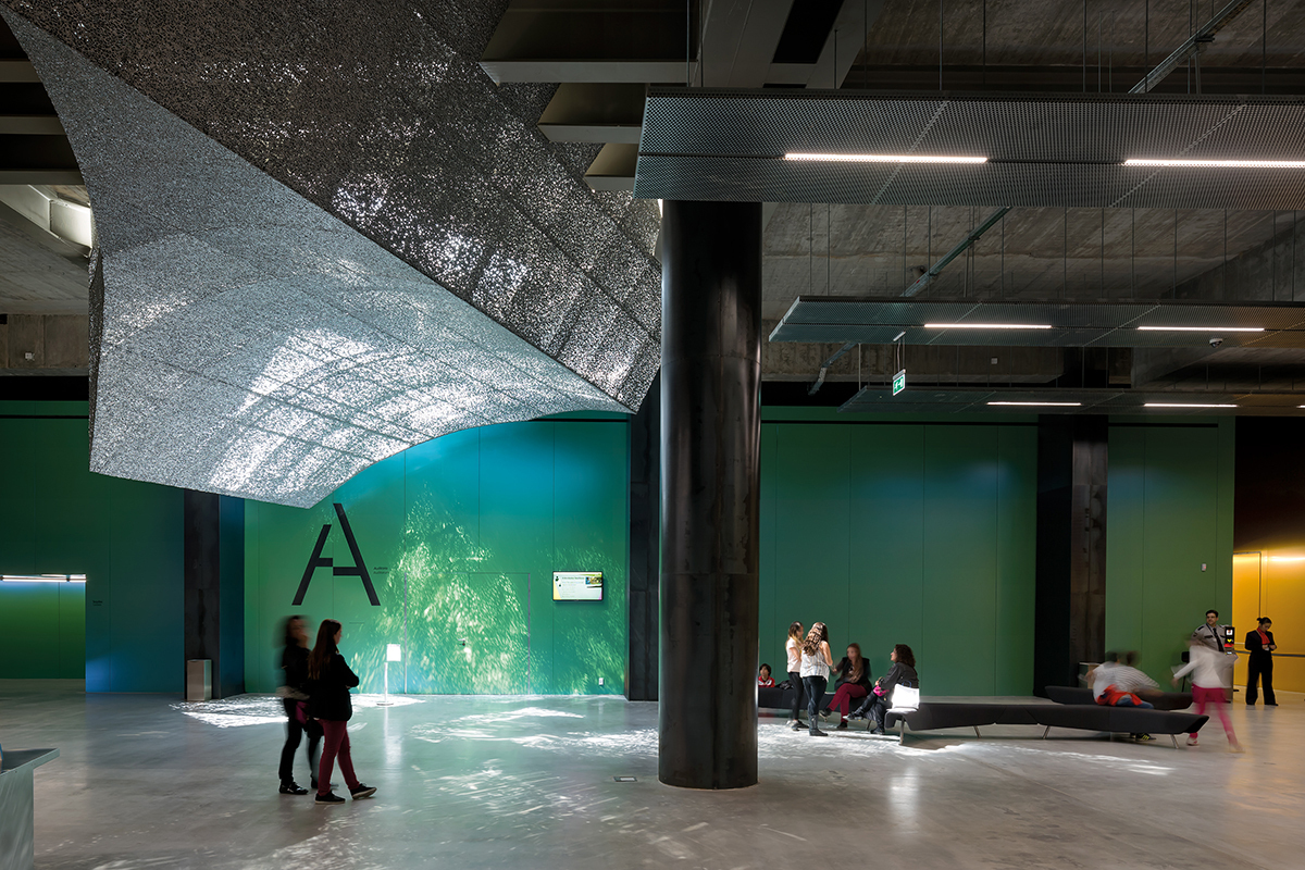 Пеноалюминий использовали при реставрации музея CaixaForum Sevilla, Испания. Музей состоит из нескольких зданий, построенных в разное время. Алюминиевые панели объединяют разные по стилю пространства: