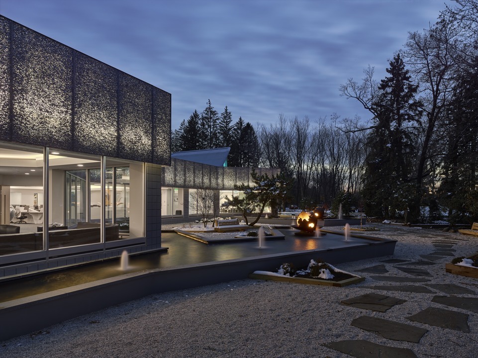 Фасад штаб-квартиры компании EarthCam в Нью-Джерси украсили полупрозрачными алюминиевыми панелями, сквозь которые проходит свет: