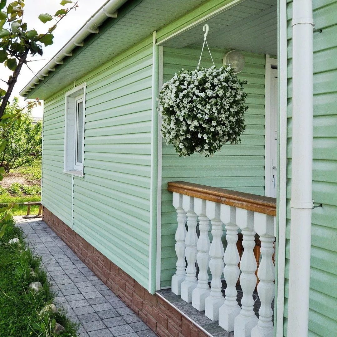 Особенно, если у вас старая дача из деревянного бруса. Его полезно обработать специальной пропиткой для теплоизоляции и защиты от гниения. Если стены кирпичные, то можно использовать краску MINERAL TECHNO c биоцидными добавками для защиты от грибка и плесни. Это минимальные и самые бюджетные способы освежить фасад дома.