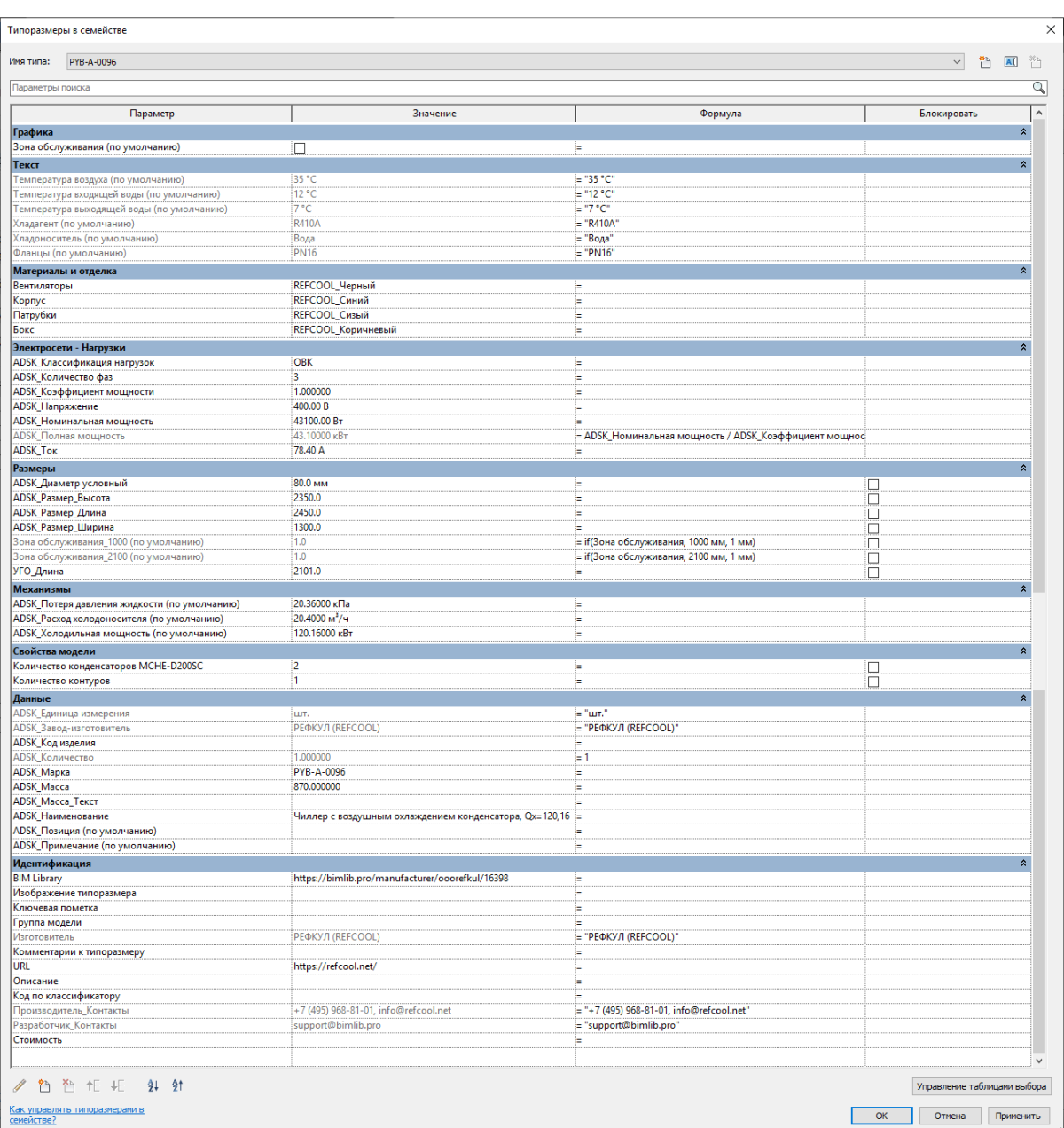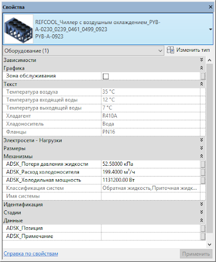 - ADSK_Холодильная мощность — если после расчёта вы получите данные, отличные от стандарных, их можно указать в данном параметре.
