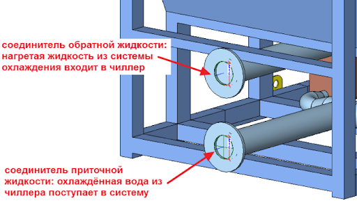 Места для подключения приточной и обратной жидкости