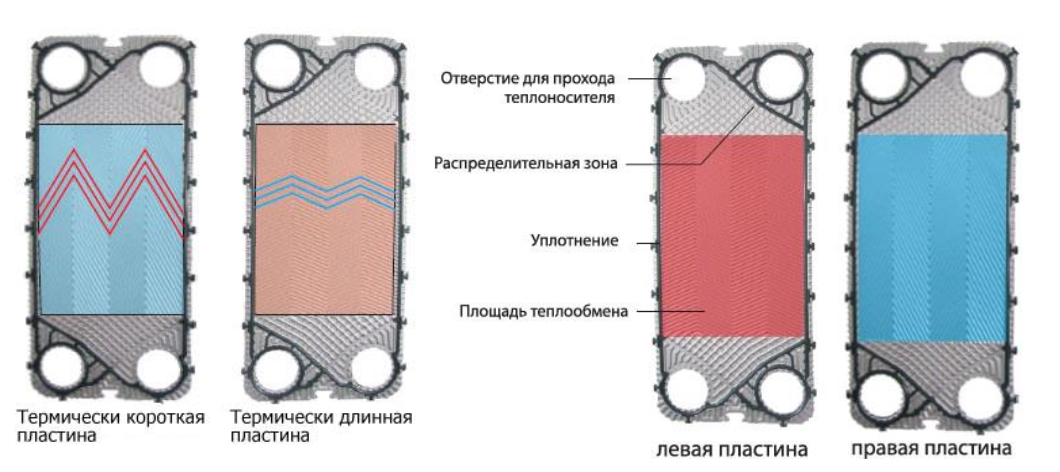- Конфигурации профилей пластин — с «острым» и с «тупым» углом штамповки позволяет наиболее точно подобрать теплообменный аппарат с точки зрения соотношения теплоэффективность / гидравлические потери;
