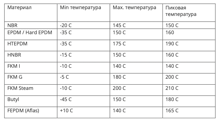 Перечень уплотнительных прокладок для различных сред, температур, условий применения.