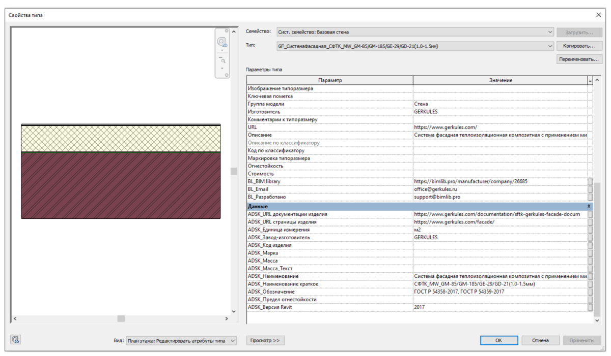 Каталог содержит модели в виде системных семейств категории «Стена». Версии файлов — Autodesk Revit 2017. Общие параметры семейства — Параметры ФОП 2017.