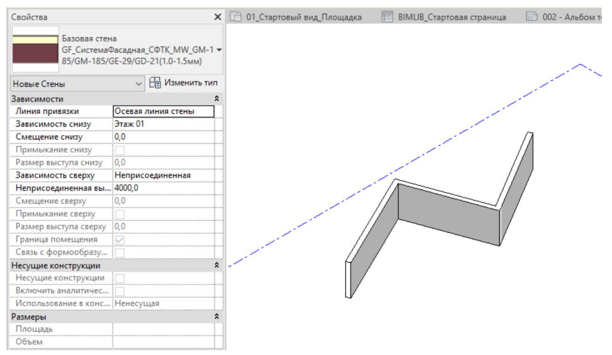 Для использования моделей СФТК в проекте используйте стандартный инструмент Revit «Стена». Выберите необходимый тип и разместите в пространстве.