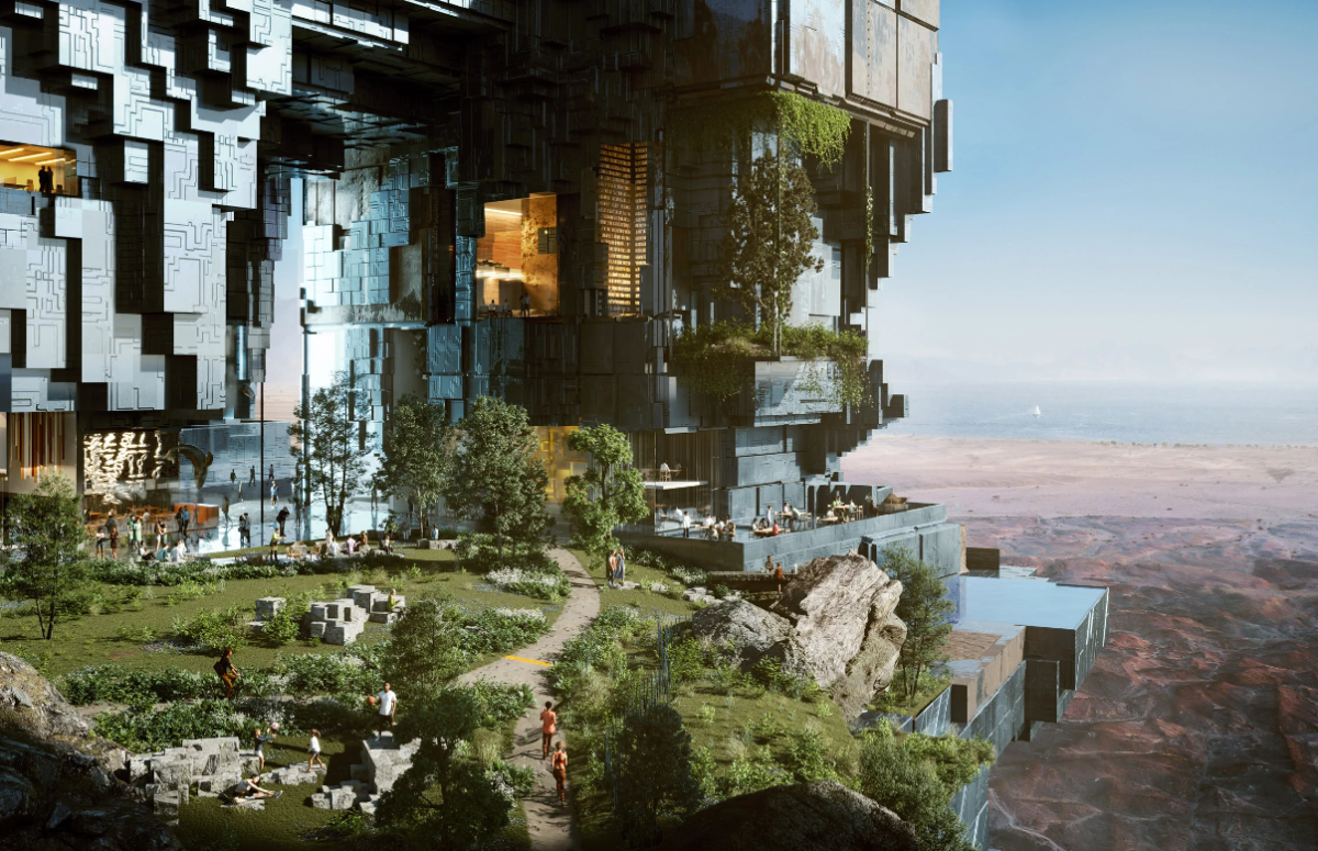 Если The Line построят, то он станет самым длинным в мире и 12-м в рейтинге самых высоких зданий мира. Внутри комплекса здания соединяются друг с другом мостами. Зеркальные фасады отражают парки внутри города, а снаружи — пустыню, море и горы.