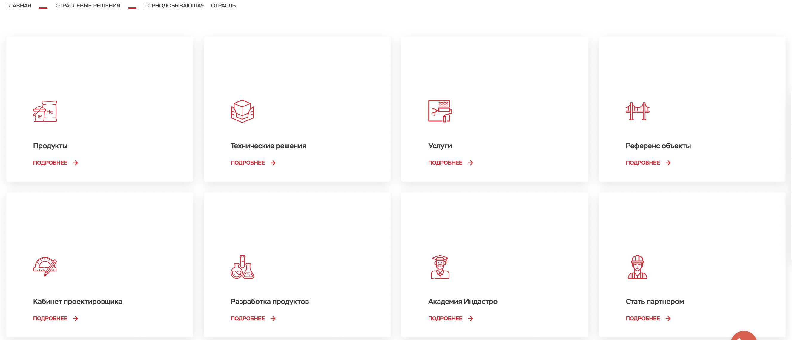 На сайте INDASTRO много полезного. В разделе «Отраслевые решения» перечислены сферы применения оборудования компании. Для каждой сферы собраны свои продукты, технические решения, услуги, референс-объекты.