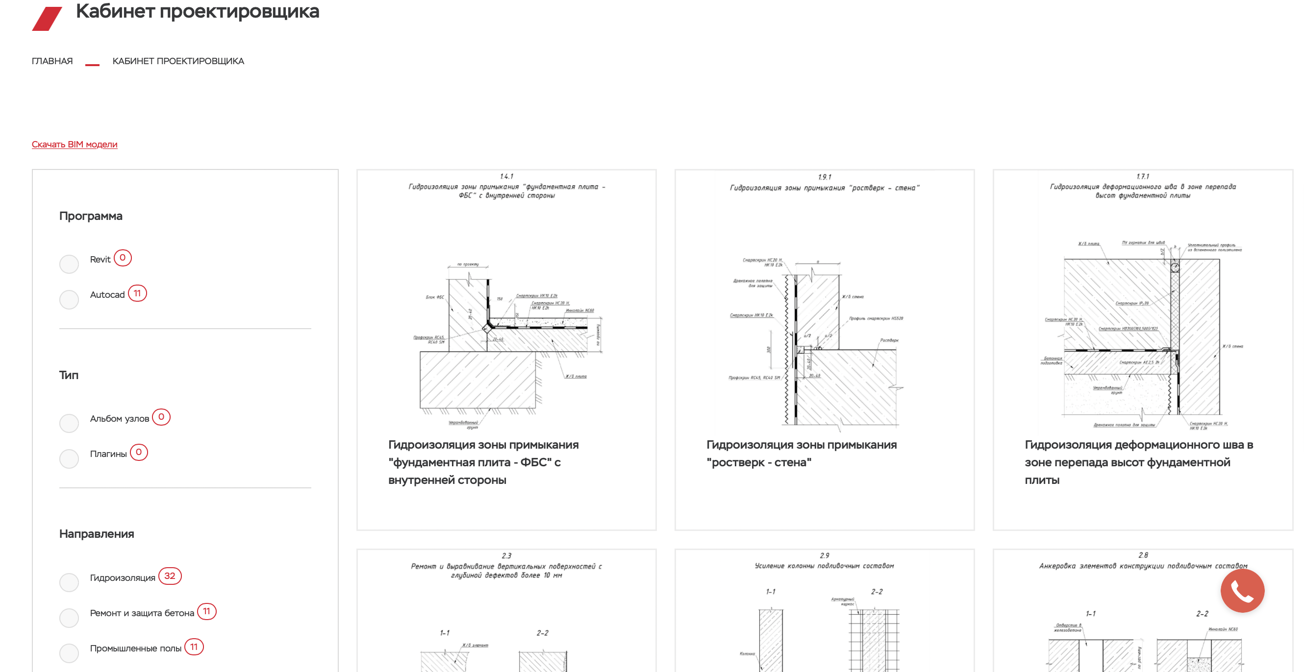 Есть кабинет проектировщика с возможностью выбора модели по критериями: «программа», «тип», «направления».