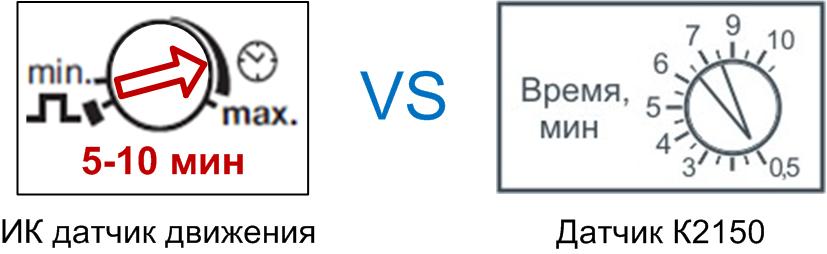 Рис 2. Обычная настройка времени задержки отключения для складов в ИК-датчиках движения и в микроволновом датчике К2150