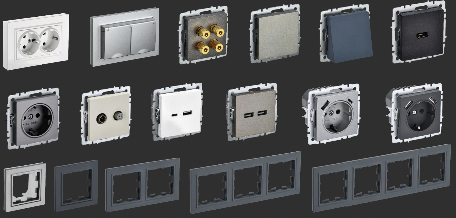 Механизмы и рамки комбинируются в любых сочетаниях, можно подобрать оптимальное решение для любого интерьера.