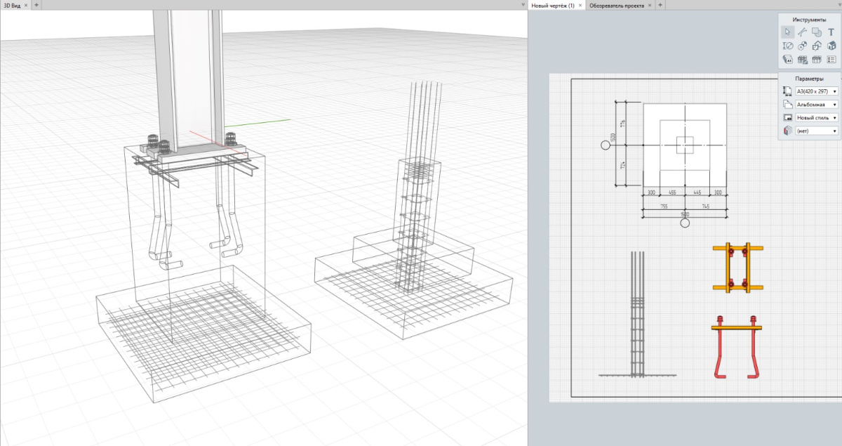 Конструкторы, благодаря этому инструменту, смогут создать несколько арматурных изделий, и разместить их в конструктивный элемент, например, фундамент (составную сборку).