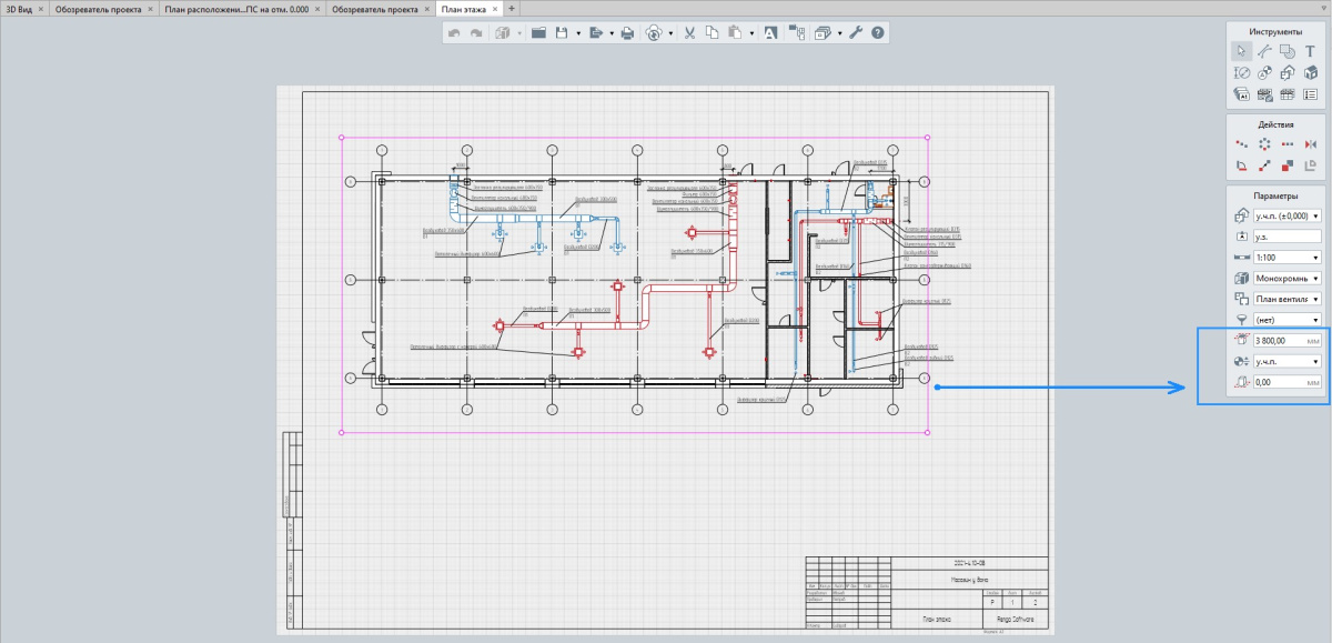 Ранее, чтобы сделать план 1-го этажа и план подвесных потолков 1-го этажа, проектировщикам приходилось добавлять на 3D-виде новый уровень и настраивать ему секущую плоскость. Теперь настроить секущую плоскость можно сразу на листе чертежа. И они не будут заменять настройки, которые были сделаны в 3D-виде.