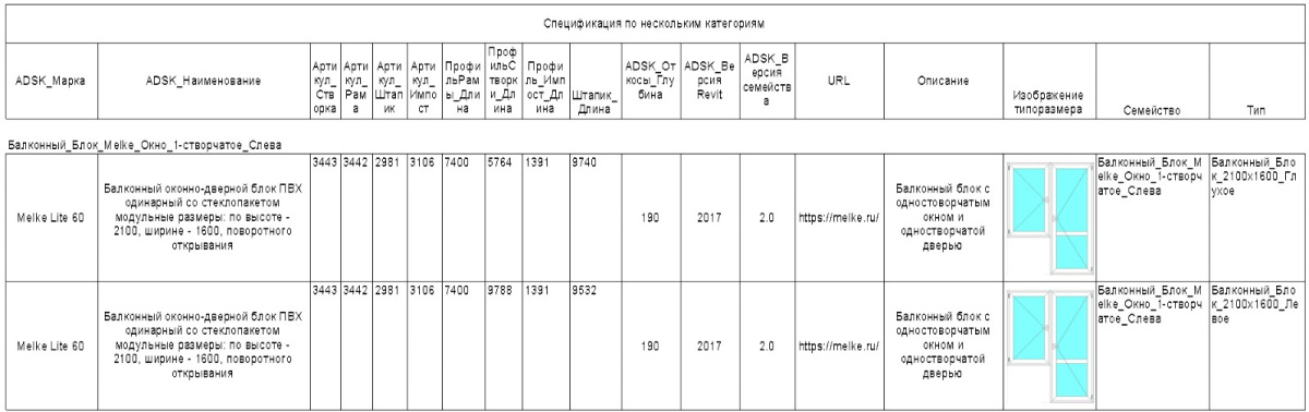 Представленный раздел «Ведомости и спецификации» содержит автоматические спецификации для просмотра параметров и состава дверных и оконных систем «Melke».