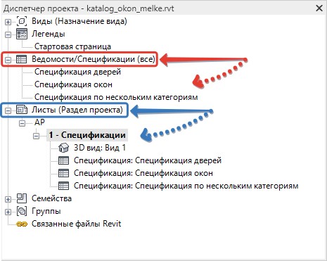 Более подробно вы можете с ними ознакомиться на листе «1-Спецификации» в разделе «Листы». Здесь также можно проанализировать дополнительную спецификацию с параметрами изделий и их комплектующих по нескольким категориям. При копировании в свой проект необходимых систем в ведомости будут транслироваться только те параметры материалов, которые относятся к выбранному типу.