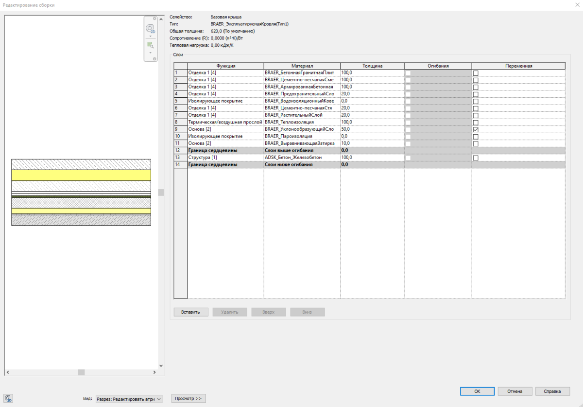 В разделе «Структура слоёв/Редактирование сборки» пользователь найдет все составляющие слои данной многослойной конструкции, сможет изменить их толщину, материал, перепад высот.