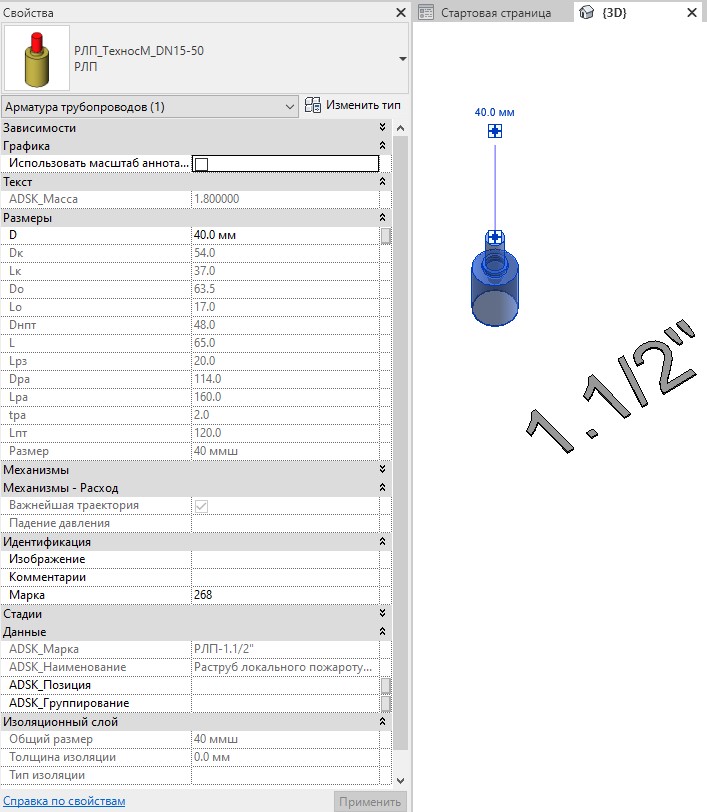 - блок «Изоляционный слой» – отображает параметры изоляции изделия при её назначении из специального меню Revit.