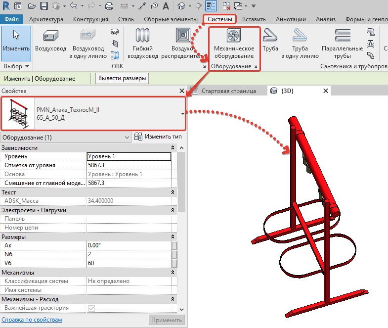 Для размещения моделей необходимо перейти на любой из видов, далее – на панели управления перейти во вкладку «Системы», после чего кликнуть по плитке «Арматура трубопроводов», и в панели свойств выбрать нужную модель и разместить её так, как необходимо.