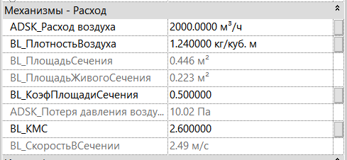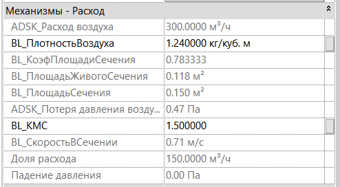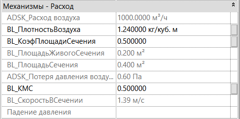 Изменяя соответствующие параметры, в параметре «ADSK_Потеря давления воздуха» проектировщик может вычислить потерю давления воздуха на элементе.