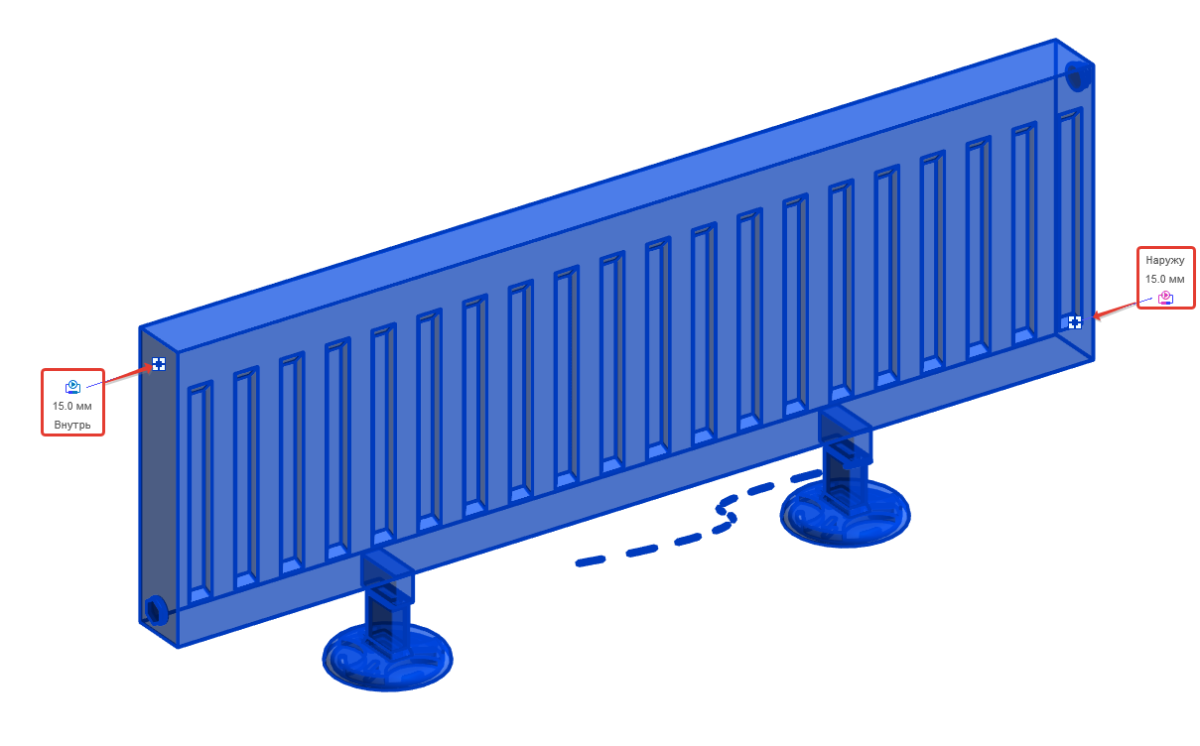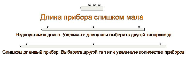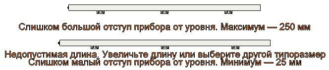 При работе с данными семействами пользователь защищён от неверного ввода габаритов или ошибочного выбора типа или отступа крепления. В случае, если длина прибора некорректна, вы получите текстовое предупреждение в виде 3D-текста рядом с семейством. Минимальная длина прибора – 400 мм, максимальная – 3000 мм, поэтому при длинах вне диапазона будет появляться ошибка. Также некоторые длины внутри диапазона недоступны из-за особенностей конструкции прибора, в этом случае также будут появляться предупреждения. Если выбрать не тот тип кронштейна или недопустимое значение отступа от уровня, которые лежит вне диапазона регулировки кронштейном, то также появится предупреждение. Для радиатора «Purmo Ventil Compact CV 44» нельзя заказать настенное крепление. Если выбрать в семействе такой тип крепления, то вы также получите сообщение об ошибке.
