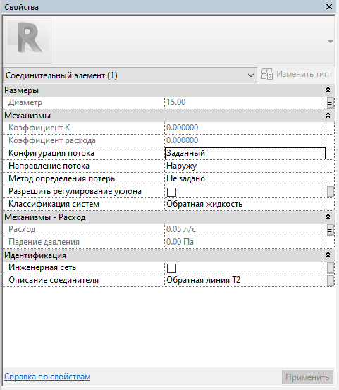 Также в свойствах присутствуют прочие параметры, указывающие на параметры работы и установки прибора – координаты коннекторов, рабочие параметры температуры, мощности, давления, ёмкости, данные по размерам, параметры рабочих агрегатов и деталей конструкции прибора. Все указанные показатели необходимы для проведения гидравлических расчётов – подбора или проверки моделей оборудования. Все модели представленного оборудования имеют возможность выбора различной локации подключения соединителей и прокладки трубопроводов, что делает их использование подходящим для расположения в любых проектных положениях. Например, первый соединитель – это подводящий соединитель диаметром 15 мм для подачи подготовленной горячей воды внутрь прибора. Второй соединитель – отводящий соединитель диаметром 15 мм, предназначенный для вывода воды далее в систему отопления. Каждому из соединительных элементов назначены параметры смещения и их размеры.