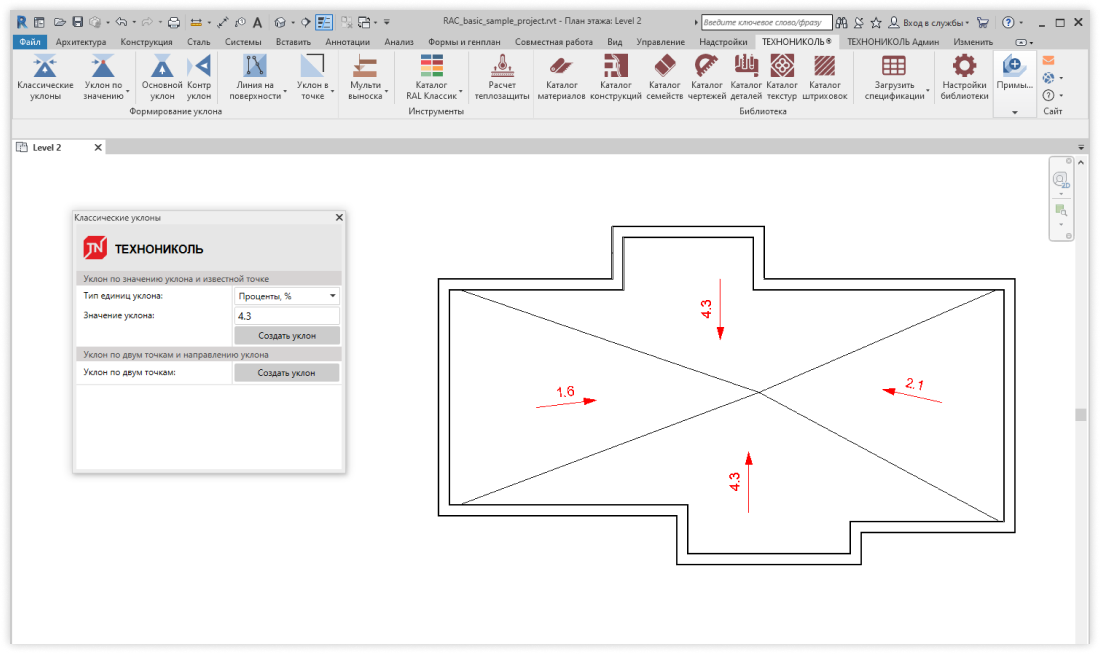 В обновленном плагине появился модуль, который позволяет строить уклоны разной конфигурации на кровлях и перекрытиях.