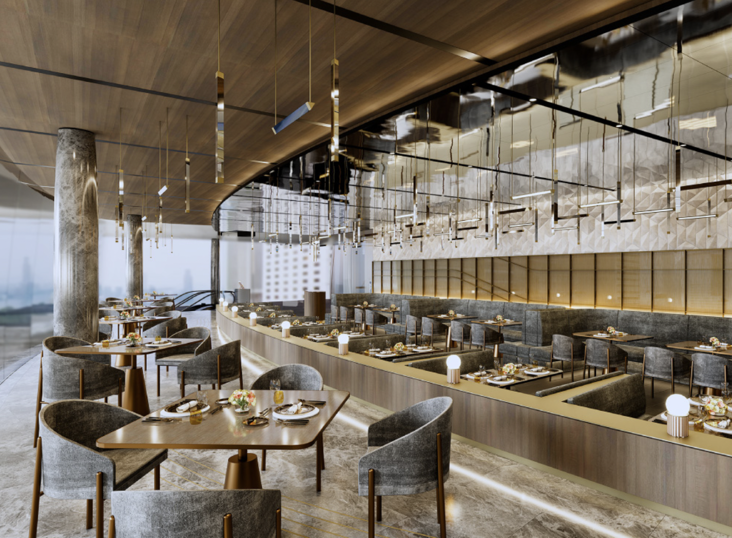 — с 36 этажами (включая первый этаж) и 5 цокольными этажами и подземной парковкой.