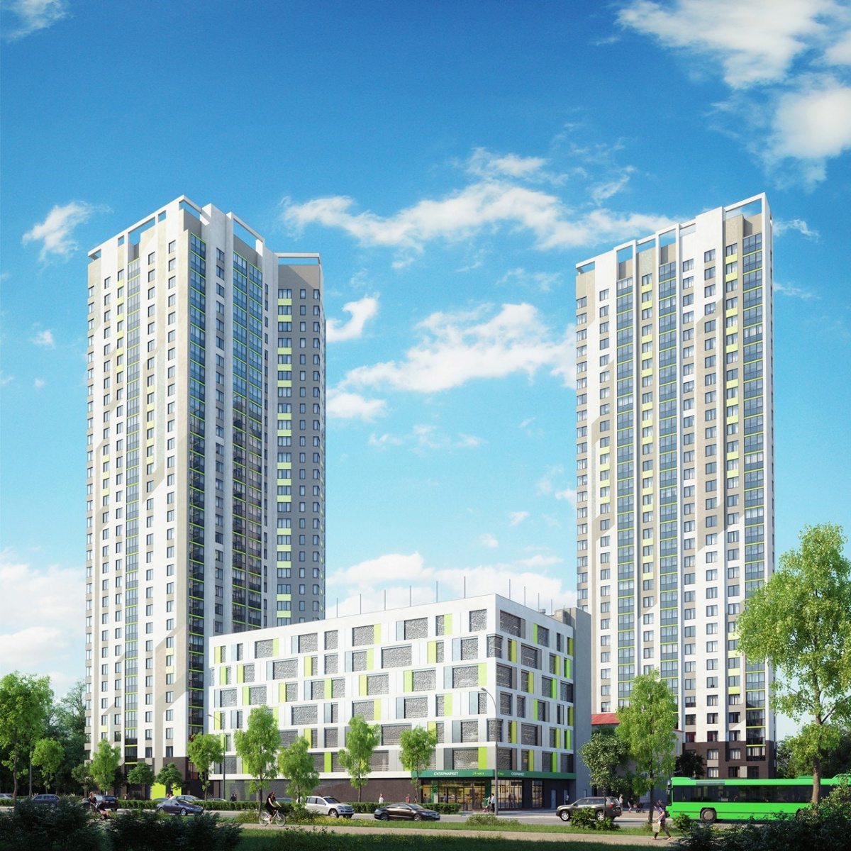 Жилой комплекс представляет собой два высотных здания, одно из которых включает 280 квартир, второе – 253 квартиры.
