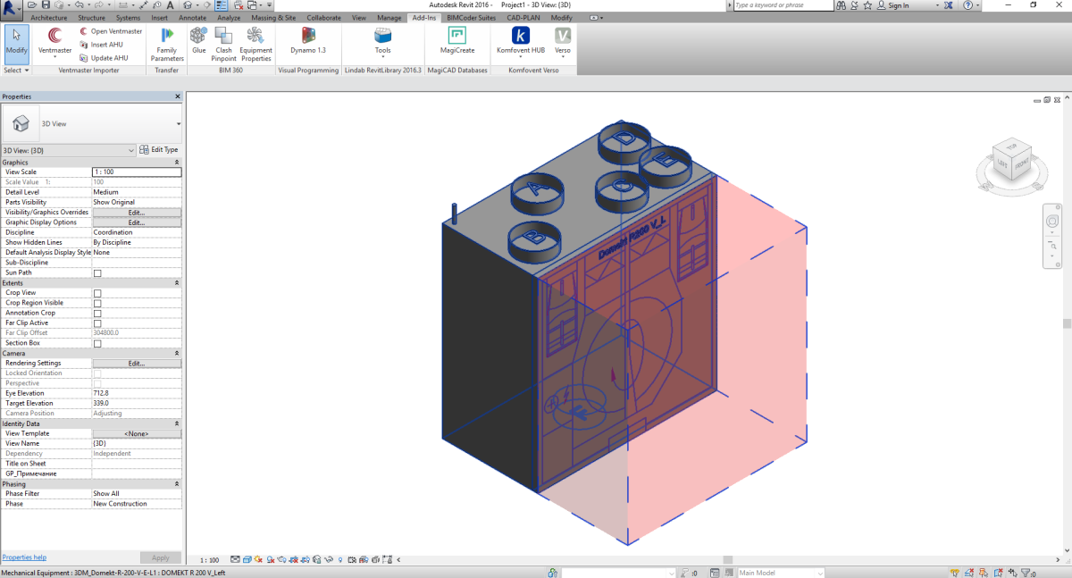 Verso Pro стал частью подборки модульной секции Autodesk Revit 3D. При открытии модуля необходимо выбрать географическое местоположение, а климатические данные определяются автоматически (по геолокации). Плагин открывает программу выбора Verso, где вы можете выбрать устройство. После выбора устройства программа позволяет экспортировать все данные в Revit, а полностью заполненная 3D-модель вентиляционной установки загружается в среду Autodesk Revit. Пример этой модели: