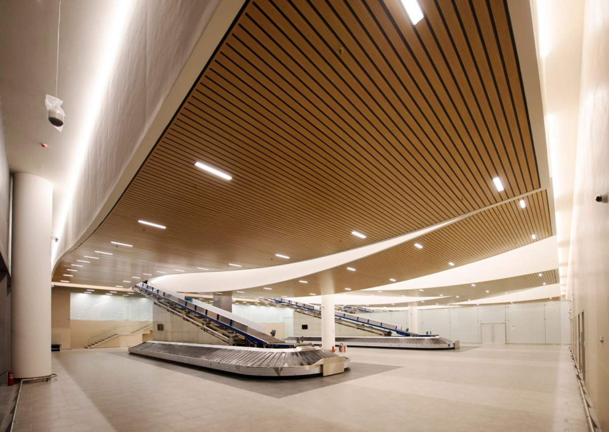 Внутри терминала световой люк шириной 8 метров, который визуально разделяет пространство, обозначая международную и внутреннюю зоны перелетов.