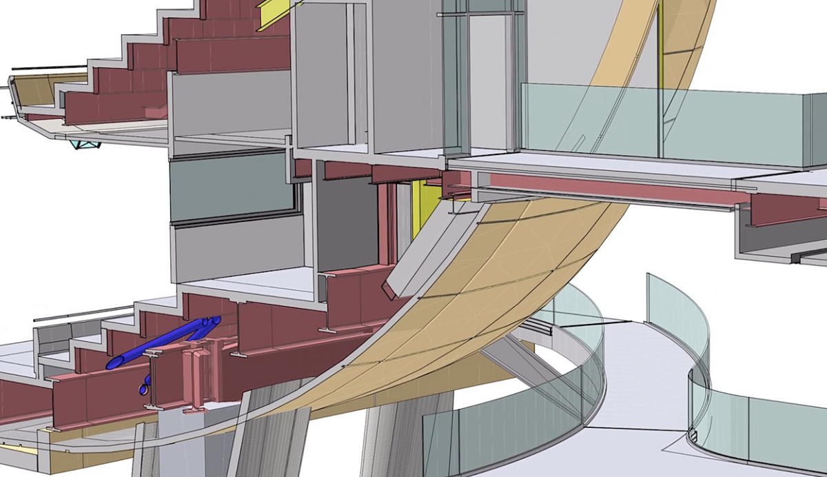 Команда вела работу в программе Archicad 25 от Graphisoft ® — программное решение BIM, которое объединяет специалистов разных направлений. Работать можно удаленно, через файлы открытого типа IFC. При этом все видят, какие изменения внесли другие участники проекта. Например, инженер-строитель разработал сложную строительную конструкцию, а дизайнеры и декораторы вносили свои идеи. Программа отслеживает, как любое изменение влияет на все здание, нет ли конфликтов между системами.
