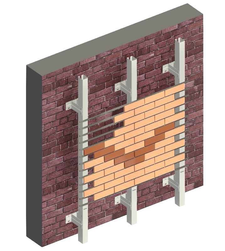 Модели, составляющие фасадные системы, представлены в виде загружаемых семейств в категориях: «Каркас несущий», куда входят модели кронштейнов, профилей крепления системы; «Обобщённые модели», в которые входят модели направляющих, различных деталей креплений (клямеры, уголки, заклёпки, мелкие профили и т.д.). Здесь также размещены модели самой клинкерной плитки.