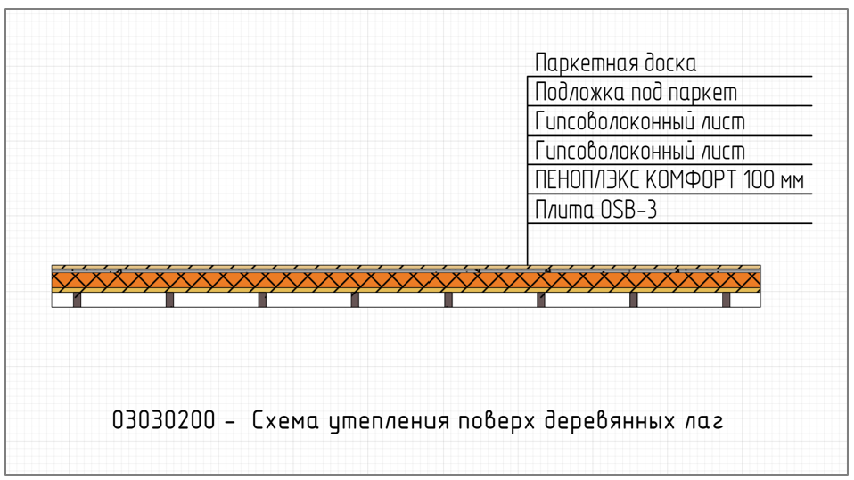 ● Схема утепления поверх деревянных лаг
