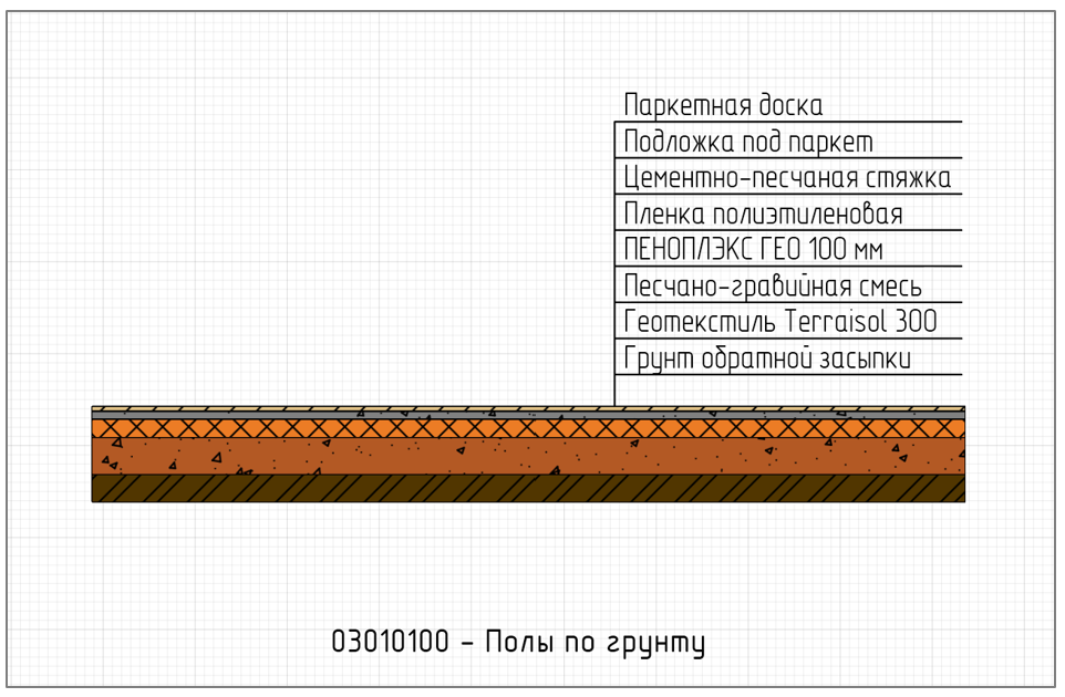 В библиотеке представлено 3 конструктивных решения устройства полов по грунту: