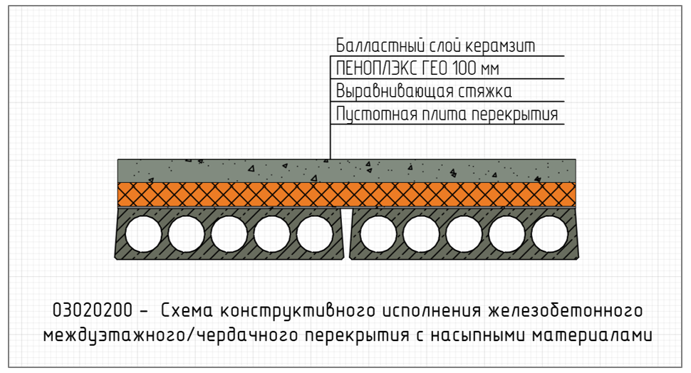 ● Схема конструктивного исполнения железобетонного междуэтажного/чердачного перекрытия с насыпными материалами