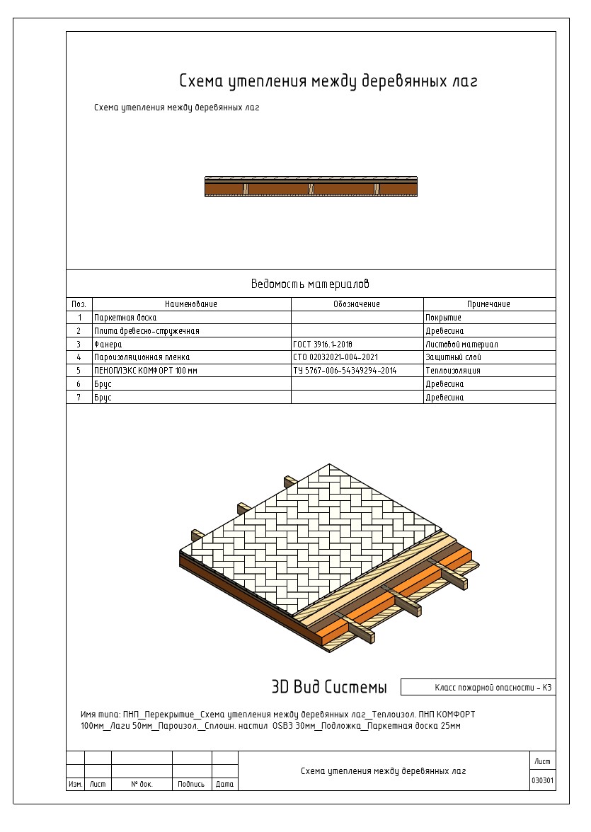 Например, так выглядит лист для конструктивного решения утепления пола между деревянных лаг: