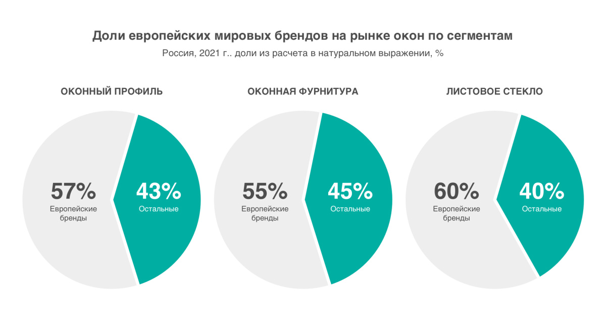 Например, патовая ситуация сейчас у оконной отрасли. По данным Okna Marketing в 2021 году доля иностранных комплектующих составляла: