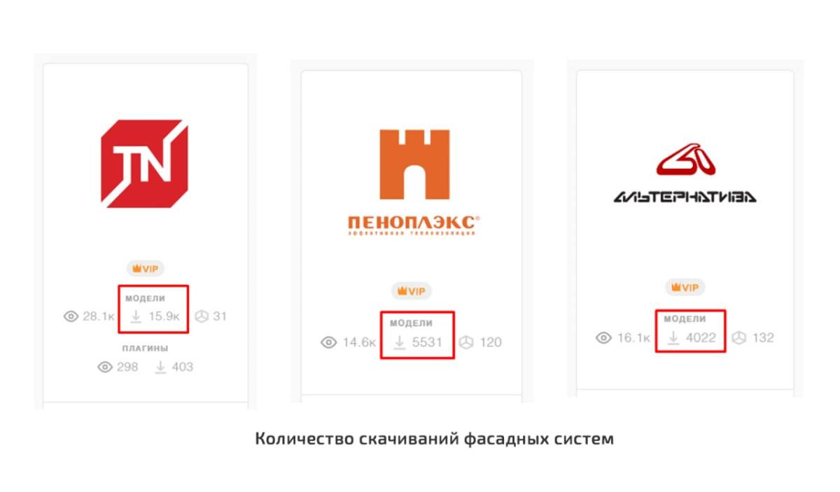 После того, как вы разместили модели в библиотеке, инженеры-проектировщики могут скачать их и использовать для проектов. Количество скачиваний – это потенциальное количество попаданий в проекты. Причём, если сравнивать с предыдущим примером, где речь шла о разовой покупке, попадание в проект – это сделка с застройщиком.