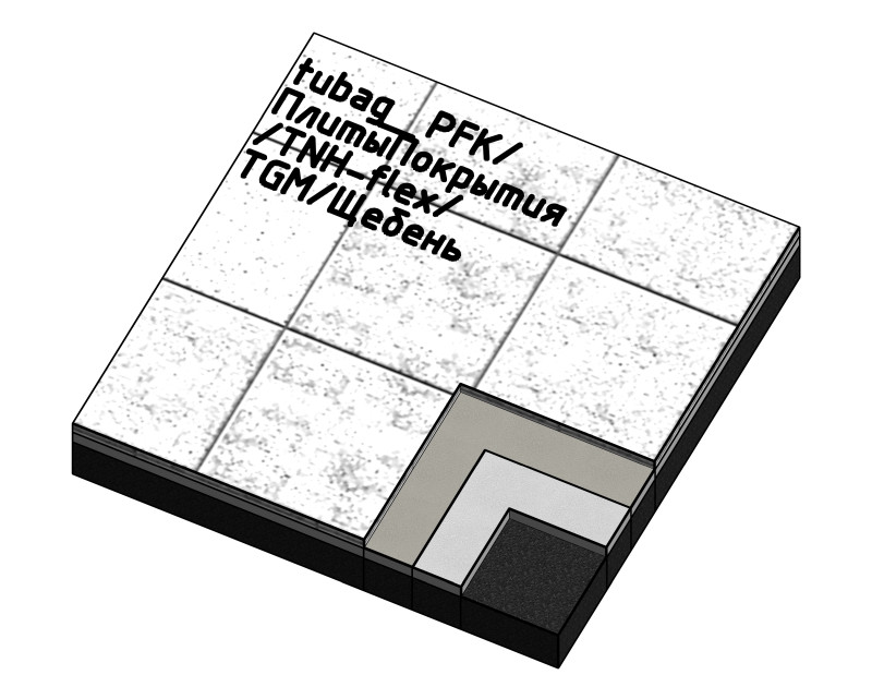 Покрытие крупноформатными плитами: PFK, плиты покрытия, TNH-flex, TGM, щебень