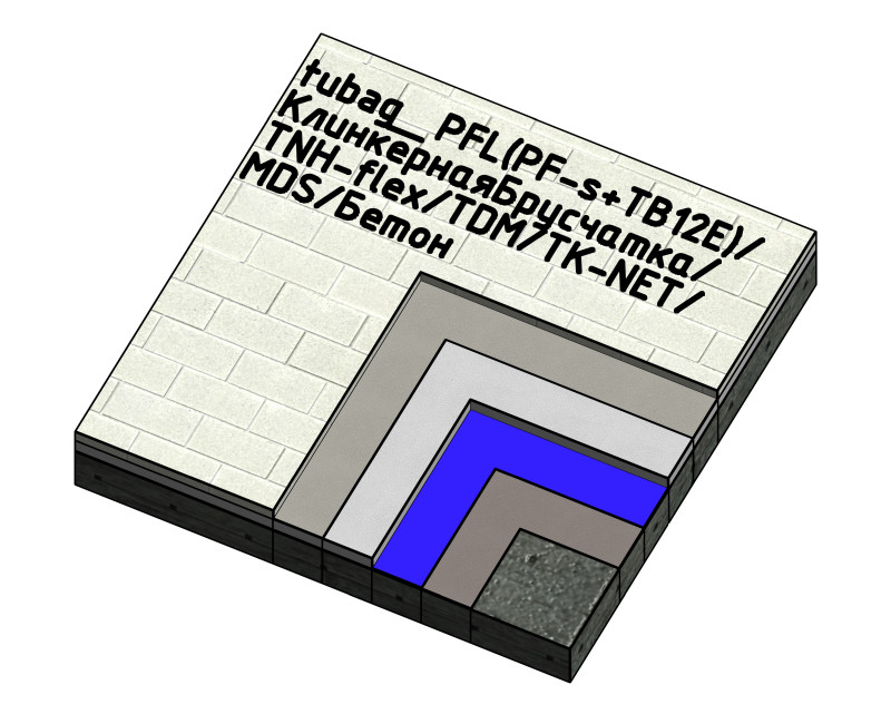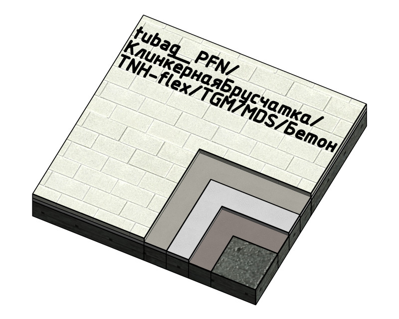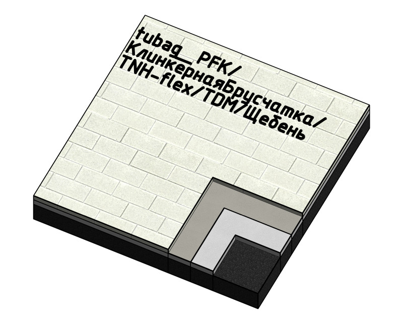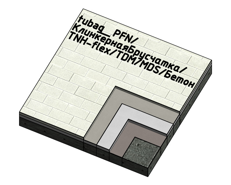 Покрытие клинкерной брусчаткой: PFL(PF‐s+TB12E), клинкерная брусчатка, TNH-flex, TDM, TK-NET, MDS, бетон
