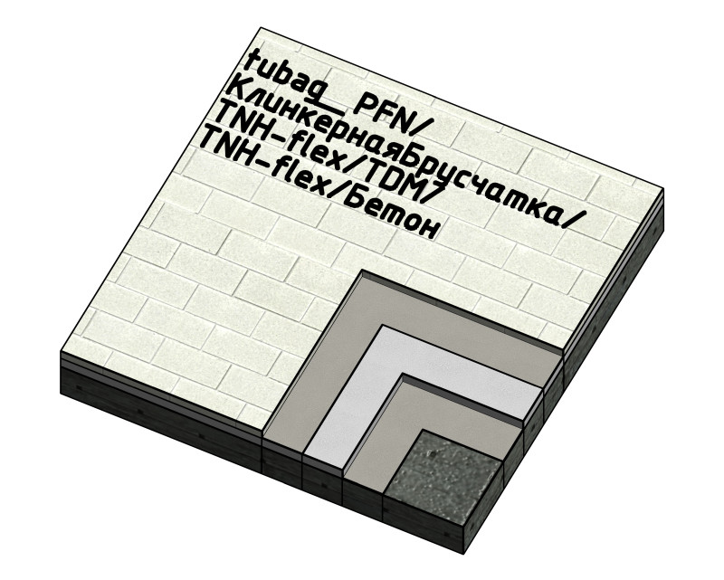 Покрытие клинкерной брусчаткой: PFN, клинкерная брусчатка, TNH-flex, TDM, TNH-flex, бетон