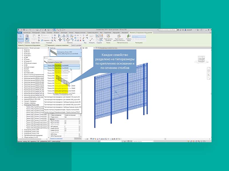 БИМ- семейства Model Studio для проектирования сетчатых ограждений от FENSYS