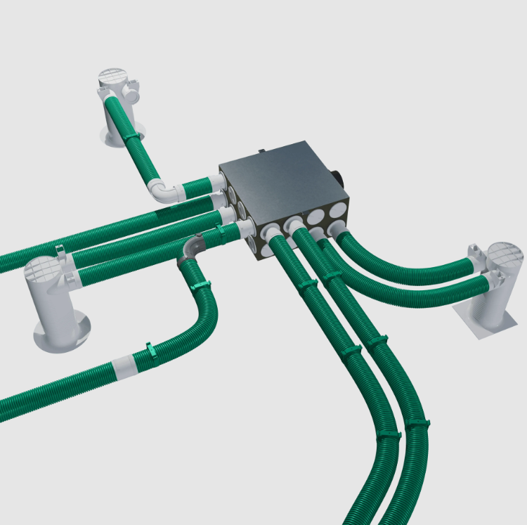 Fliben предлагает оптимальные решения для многоуровневых объектов с несколькими помещениями. Благодаря воздухораспределительным коллекторам с переменным количеством подключений, от одной распределительной коробки могут отходить до двадцати четырех воздуховодов. Круглые воздуховоды обеспечивают низкие потери давления и гибкие трассы. Антибактериальный слой Ultra-Clean обеспечивает высокий уровень гигиены, антистатические свойства минимизируют образование пыли внутри воздуховода, которая могла бы стать субстратом для микроорганизмов.