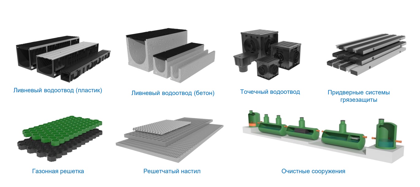 Пластиковые и бетонные лотки, системы водоотвода и очистные сооружения Gidrolica.