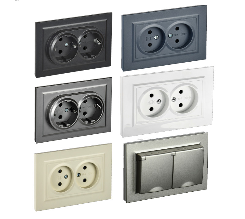 BRITE Розетки 2х-местные 10А/16A в сборе IEK