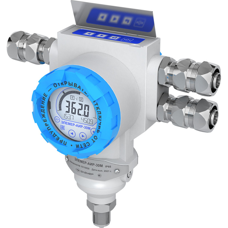 Один из лучших российских интеллектуальных датчиков давления с широкими функциональными возможностями и русскоязычным меню. Датчики предназначены для непрерывного преобразования в унифицированный токовый выходной сигнал или в сигнал напряжения постоянного тока, а также в цифровой сигнал в стандарте протокола HART или Foundation Fieldbus входных измеряемых величин. ЭЛЕМЕР-АИР-30М осуществляет функцию сигнализации и автоматического регулирования контролируемых параметров с помощью двух типов реле: электромагнитных (двустабильных) и оптореле.